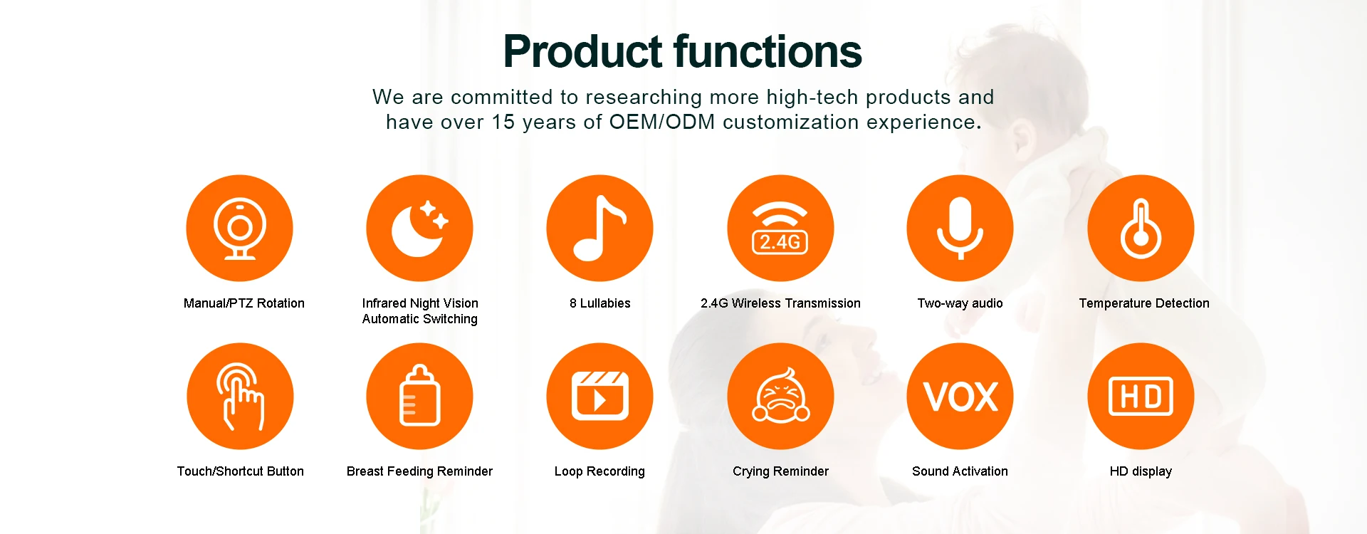 Productos principales:Monitor de bebé, cámara de salpicadero, monitor de ancianos